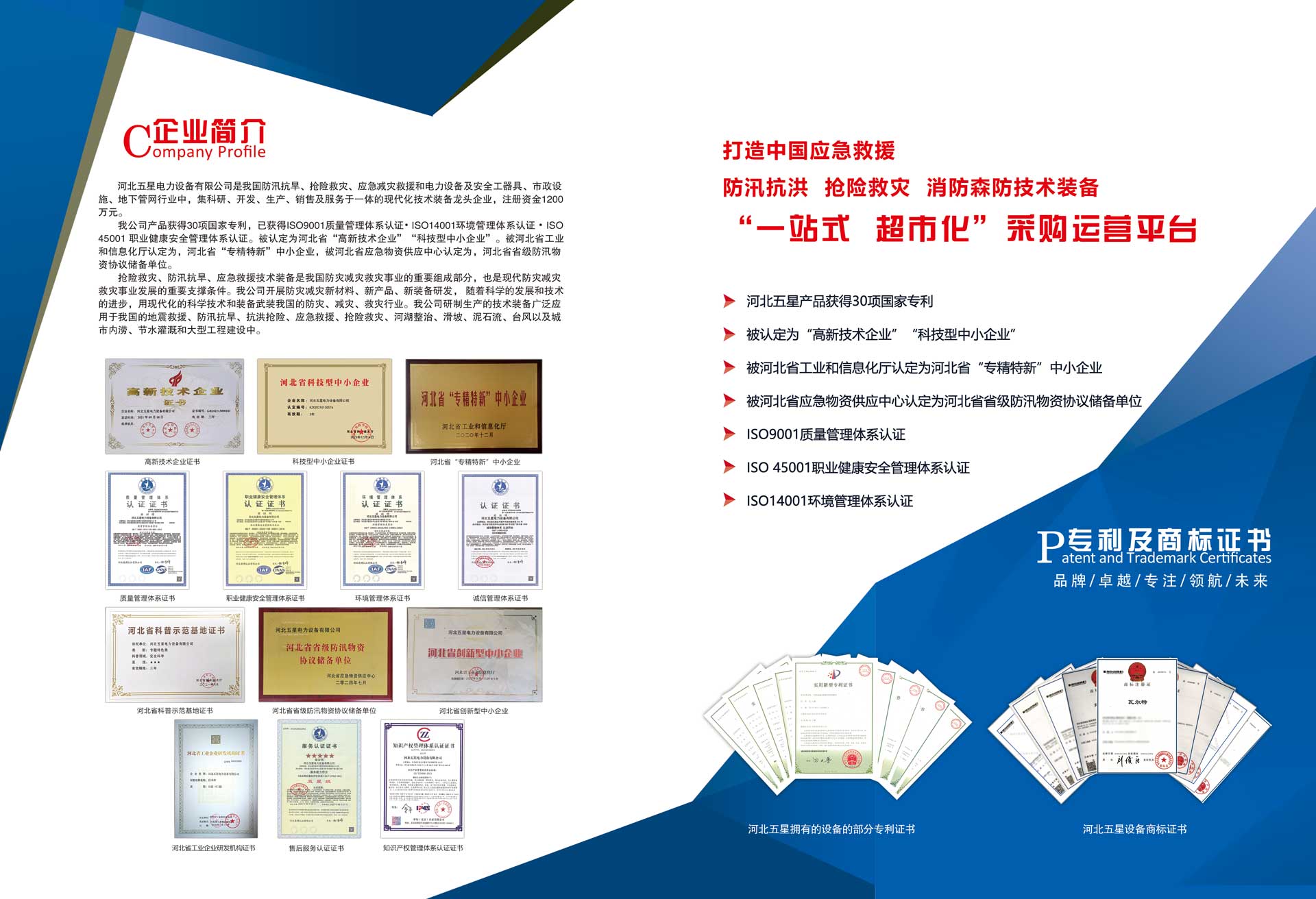 河北五星電力設(shè)備有限公司是我國防汛抗旱、搶險救災(zāi)、應(yīng)急減災(zāi)救援和電力設(shè)備及安全工器具、市政設(shè)施、地下管網(wǎng)行業(yè)中,集科研、開發(fā)、生產(chǎn)、銷售及服務(wù)于一體的現(xiàn)代化技術(shù)裝備高新技術(shù)企業(yè),注冊資金1200萬元。